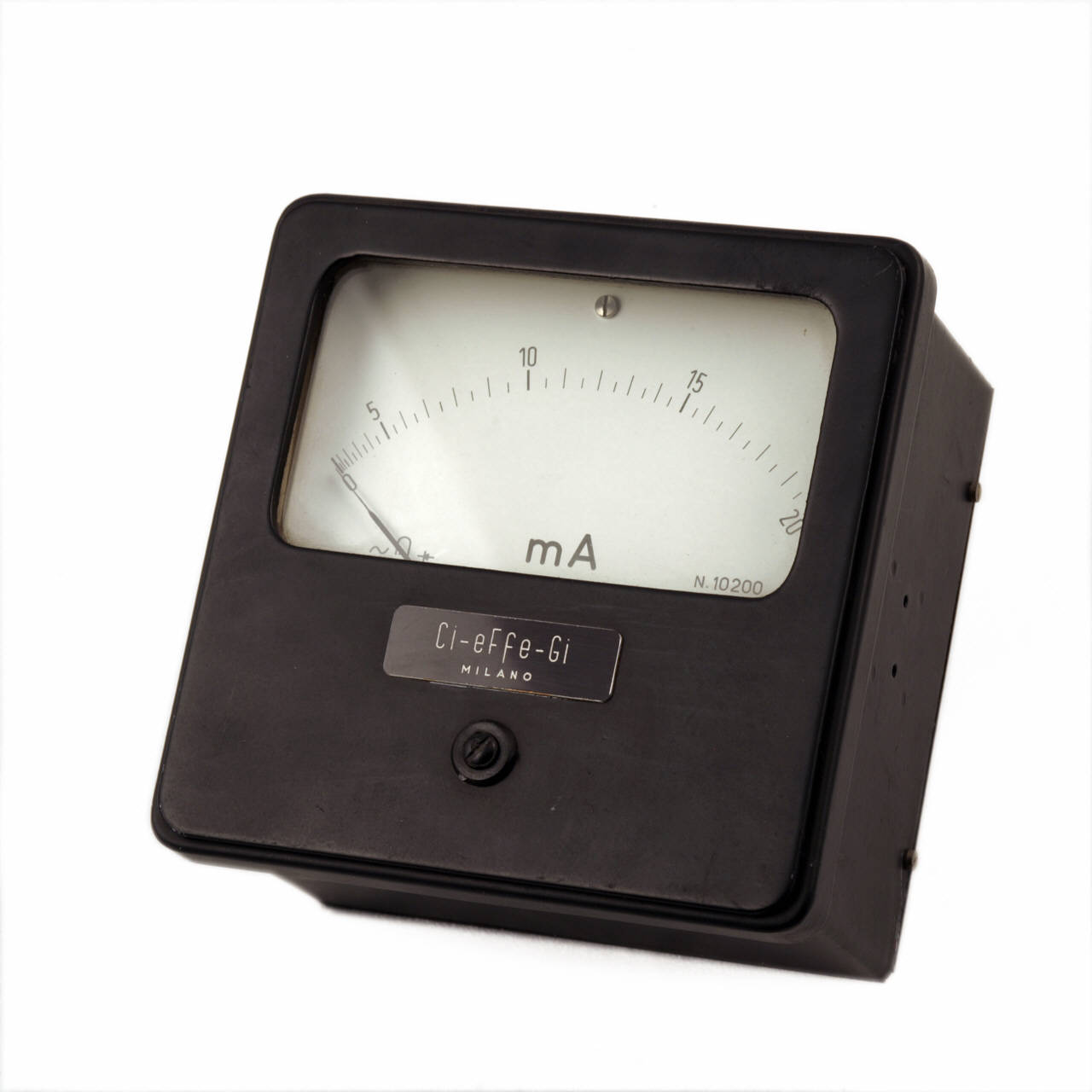 Questo strumento ha forma parallellepipeda ed un quadrante, che occupa la metà superiore del pannello frontale, ricoperto e protetto da una lastra in vetro. L'altra parte del pannello frontale è in metallo, come il resto della custodia dello strumento.\nLa scala di misura, ad arco di circonferenza con zero a sinistra, permette misure di correnti alternate comprese tra 0 e 20 A, con tacche ogni 0,5 ed indicazione numerica ogni 5 unità.\nLa lancetta indicatrice è imperniata nella parte inferiore quadrante. In prossimità di questo punto, sulla parte metallica del pannello frontale, è inserita una vite per la correzione dello zero.\nSulla parete posteriore troviamo i connettori per i collegamenti elettrici al circuito da misurare e due dispositivi a vite che permettono il posizionamento dello strumento su di un quadro di controllo più generale.