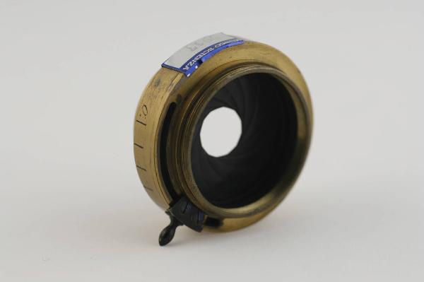 Diaframma a iride costituito da una serie di lamelle metalliche apribili manualmente, montate su un telaio in mertallo e ottone a forma di anello.\nLe due estremità sono filettate per l'avvitamento delle altre parti dell'obiettivo componibile.\nLateralmente è inserita una levetta scorrevole che permette di aprire e chiudere le lamelle.