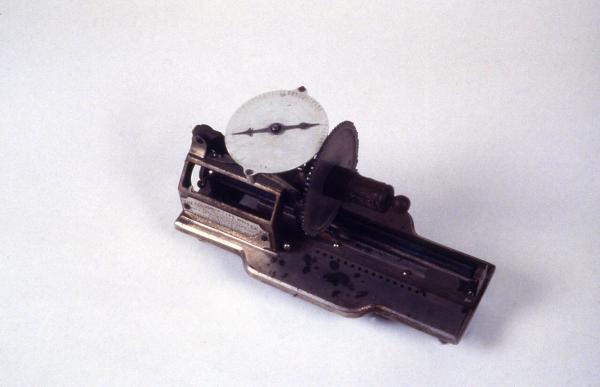 La macchina poggia su una base metallica con quattro piedini, sopra la quale è montato longitudinalmente il rullo portacarta. Al di sopra del rullo, i 72 caratteri sono montati su un disco verticale ed ortogonale al rullo stesso, provvisto di una manopola in ebanite. La manopola è collegata ad una lancetta ruotante su un quadrante orizzontale di forma circolare in celluliode; su questo quadrante sono riportati le lettere maiuscole e minuscole, i segni di interpunzione e le cifre.\nDal punto di vista tipologico, questa macchina può essere considerata sia ad indice posizionabile dato che la scelta del carattere da stampare avviene mediante indice, sia ad elementi intercambiabili visto che è possibile cambiare la grafia attraverso la sostituzione del disco portacaratteri