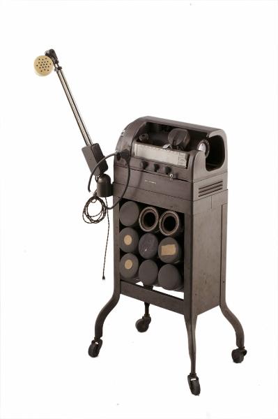 L'apparecchio è costituito da un corpo in metallo, verniciato di grigio, montato su un carrellino interamente in metallo, anch'esso verniciato di grigio e dotato di quattro ruote in gomma dura. Il lato anteriore del carrello presenta un portacilindri con nove spazi disposti su tre file. Il dittafono vero e proprio chiude la sommità del carrellino ed è costituito da una base contenente il motore elettrico e un piano superiore ospitante il mandrino e la testina di riproduzione. Il motore elettrico, per mezzo di una cinghia di trasmissione, aziona il volano in cui è infilato l'asse del mandrino; mandrino e volano sono riparati da una copertura in metallo dalle linee arrotondate. L'asse del mandrino, per mezzo di ruote dentate, mette a sua volta in rotazione la vite senza fine che, ruotando, trascina il supporto della testina lungo una guida parallela al mandrino. Alla testina è fissato un indicatore che scorre lungo il vassoietto frontale sul quale vanno posizionati i foglietti riportanti le informazioni sull'incisione da riprodurre. I comandi sono disposti orizzontalmente sul lato anteriore dell'apparecchio e consistono in tre selettori dei livelli di volume, tono e velocità; sempre sul lato anteriore si trova il gancio commutatore rivestito in gomma per appendere la cuffia. Sull'angolo anteriore sinistro è installato il sostegno dell'altoparlante dotato di braccio allungabile in alluminio; grazie al giunto a sfera, l'altoparlante è posizionabile in tutte le direzioni; sul basamento dell'altoparlante è posto un interruttore e un supporto bipolare per l'allacciamento della cuffia. Il supporto bipolare per l'alimentazione dell'apparecchio è collocato sul lato posteriore, mentre sul fianco sinistro si trovano il supporto bipolare per il collegamento dell'altoparlante e il supporto a cinque poli per il collegamento della pedaliera. La connessione della cuffia avviene mediante un supporto bipolare posto sul microfono. Il dittafono è provvisto del cavo elettrico per l'alimentazione, una cuffia, una pedaliera e nove cilindri di cera, conservati all'interno di contenitori in cartone.