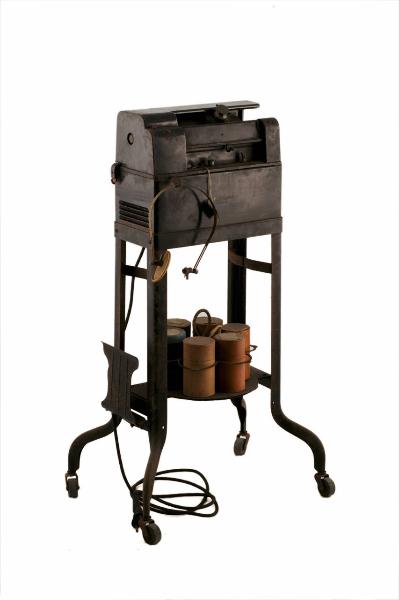 L'apparecchio è costituito da un corpo in ghisa, verniciato di nero, montato su un carrellino interamente in metallo, anch'esso verniciato di nero e dotato di quattro ruote in gomma dura. Sulla traversa nella parte bassa del carrello è collocato un portacilindri di forma circolare con sei spazi. Allo stesso livello, sul fianco sinistro, è situato un portadocumenti recrinabile. Il dittafono vero e proprio è montato sulla sommità del carrellino ed è costituito da una base in ghisa, all'interno della quale sono sistemati il motore e i circuiti elettrici, e da un piano superiore, dove si trovano il mandrino e la testina di riproduzione; il mandrino e il volano sono riparati da una copertura in metallo dalle linee arrotondate. Il piano superiore è sollevabile per accedere direttamente al motore e ai circuiti, per la riparazione o la sostituzione delle parti. L'asse del mandrino è infilato in un volano, al quale il motore trasmette la rotazione per mezzo di una cinghia. L'asse inoltre, per mezzo di ruote dentate, mette in rotazione anche la vite senza fine che, ruotando, trascina il supporto della testina lungo una guida parallela al mandrino. Sulla testina è collocato il regolatore dell'intensità di volume della riproduzione, posizionabile su quattro livelli (off, soft, medium, loud); dalla destra del diaframma sporge il supporto per l'applicazione del tubo della cuffia. Alla testina infine è fissato un indicatore che scorre lungo il vassoietto frontale sul quale vanno posizionati i fogli riportanti le informazioni sull'incisione da riprodurre.\nLungo il bordo anteriore sono posti l'interruttore per l'accensione dell'apparecchio, una manopola e la leva per l'estrazione del cilindro. Sul lato anteriore inoltre è presente un gancio per appendere la cuffia. Il supporto bipolare per l'alimentazione dell'apparecchio è collocato sul lato posteriore, mentre sul fianco sinistro si trova il supporto per il collegamento della pedaliera ad aria compressa. Il dittafono è accessoriato con un cavo elettrico e una cuffia con padiglioni in celluloide.