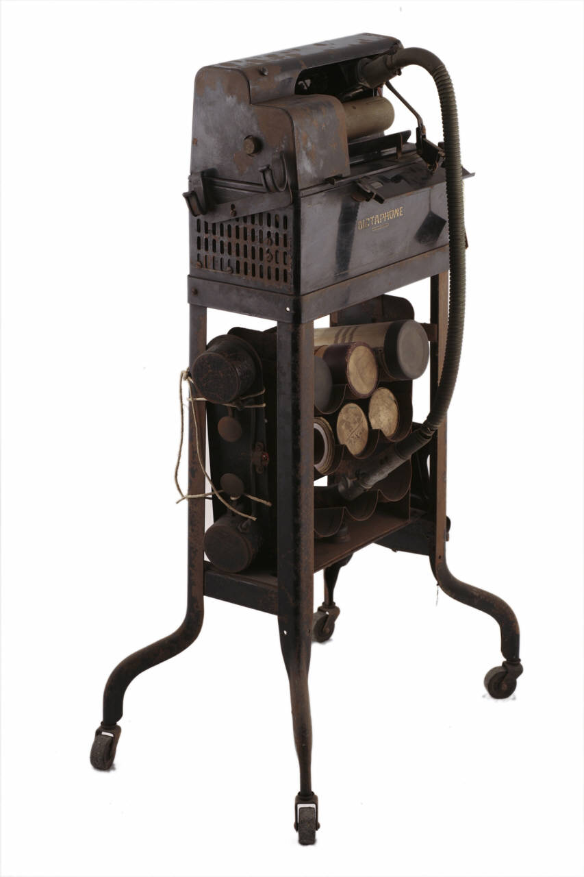 L'apparecchio è costituito da un corpo in ghisa, verniciato di nero, montato su un carrellino interamente in metallo, anch'esso verniciato di nero e dotato di quattro ruote in gomma dura. Nella parte bassa del carrello è posizionato un portacilindri, provvisto di nove spazi, disposti su tre file; sul lato destro si trova un portafogli a molla. Il dittafono vero e proprio è montato sulla sommità del carrellino ed è costituito da una base in ghisa, all'interno della quale sono sistemati il motore e i circuiti elettrici, e da un piano superiore, dove si trovano il mandrino e la testina di registrazione, protetti da una copertura in metallo asportabile. Il piano superiore è sollevabile per accedere direttamente al motore e ai circuiti, per la riparazione o la sostituzione delle parti. L'asse del mandrino è infilato in un volano riparato da una copertura in metallo, al quale il motore trasmette la rotazione per mezzo di una cinghia di pelle. L'asse inoltre, per mezzo di ruote dentate, mette in rotazione anche la vite senza fine che, ruotando, trascina il supporto della testina lungo una guida parallela al mandrino. Alla testina è collegato, attraverso un tubo flessibile in metallo, una cornetta in celluloide che funge da collettore del suono per la registrazione; l'impugnatura dell'imbuto è provvista di un pulsante che, per mezzo di una lunga molla posta nel tubo, permettere di controllare operativamente la registrazione. Davanti al mandrino, si trova una levetta azionante uno stantuffo che spinge il cilindro fuori dal mandrino. Sul lato frontale è fissato un vassoietto per l'inserimento del blocchetto di foglietti per appuntare i dati dell'incisione; su di esso, durante le fasi di registrazione, si muove un indicatore fissato sulla testina di registrazione. Sul fianco destro dell'apparecchio è presente un gancio rivestito di gomma per appendere la cornetta; col sollevamento della cornetta, il gancio viene alzato da una molla che comanda l'accensione del dittafono. Il supporto bipolare per l'alimentazione dell'apparecchio si trova sul lato posteriore. La macchina è accessoriata con una vaschetta estraibile da inserire sotto il mandrino per la raccolta degli scarti dell'incisione e con una pedaliera ad aria compressa.