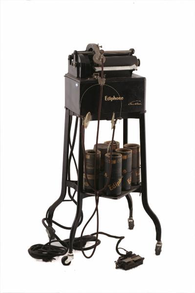 L'apparecchio è costituito da un corpo in ghisa, verniciato di nero, montato su un carrellino interamente in metallo, anch'esso verniciato di nero e dotato di quattro ruote in gomma dura. Nella parte bassa del carrello è presente un ripiano, sul quale è collocato un portacilindri estraibile, provvisto di sei spazi. Il dittafono vero e proprio è montato sulla sommità del carrellino ed è costituito da una base in ghisa, all'interno della quale sono sistemati il motore e i circuiti elettrici, e da un piano superiore, dove si trovano il mandrino e la testina di riproduzione. Il piano superiore è sollevabile per accedere direttamente al motore e ai circuiti, per la riparazione o la sostituzione delle parti. L'asse del mandrino è infilato in un volano riparato da una copertura in metallo, al quale il motore trasmette la rotazione per mezzo di una cinghia di pelle. Sul lato destro del mandrino è presente una manopola, schiacciando la quale si spinge in fuori il cilindro. L'asse del mandrino inoltre, per mezzo di ruote dentate, mette in rotazione anche la vite senza fine che, ruotando, trascina il supporto della testina lungo una guida parallela al mandrino. Una leva situata sul braccio portatestina comanda l'abbassamento e il sollevamento della testina dal cilindro. Alla testina è collegato, attraverso un tubo flessibile in gomma marrone, una cuffia con padiglioni in celluliode; il selettore per la regolazione del volume di riproduzione è costituito da una manopola rotante posta sull'innesto del tubo delle cuffie sul diaframma di riproduzione. Sul lato frontale dell'apparecchio è presente un gancio per appendere le cuffie; col sollevamento delle cuffie, il gancio viene alzato da una molla che comanda l'accensione del dittafono. Al si sopra di questo gancio è fissato un vassoietto per l'inserimento del blocchetto di foglietti con le annotazioni dei dati dell'incisione. Sul lato posteriore dell'apparecchio si trovano la presa d'aria per il motore elettrico e due supporti, bipolare per il cavo di alimentazione e quadripolare per il collegamento dei comandi a distanza. Il dittafono è accessoriato con 6 cilindri di cera conservati nei contenitori in cartone, un cavo elettrico per l'alimentazione e una pedaliera elettrica per i comandi a distanza, dotata di due pulsanti per l'avvio della riproduzione e il riascolto del cilindro e di due gancini laterali per un opportuno posizionamento della pulsantiera in base alle esigenze della dattilografa.