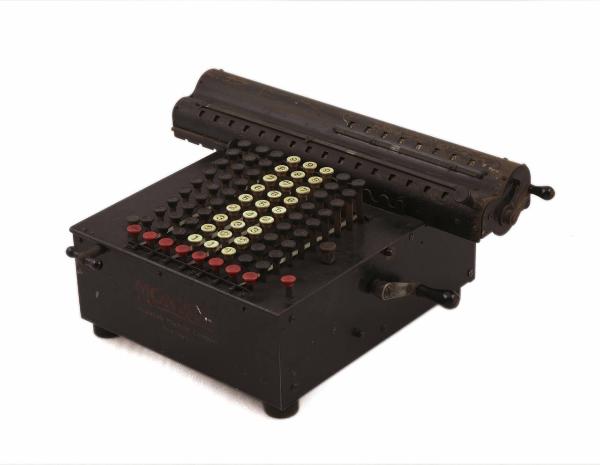 Calcolatrice meccanica a tastiera estesa, costituita da un corpo in ghisa verniciato di nero lucido, su cui è montato un carello mobile. La macchina poggia su quattro piedini di gomma. La tastiera è formata da 90 tasti in gomma dura, numerati da 1 a 9 e disposti in otto colonne; alla base di ogni colonna, inoltre, è posto un tasto rosso per l'azzeramento. Le colonne di tasti sono separate tra loro da indicatori visivi per l'impostazione delle cifre decimali. Alla destra della tastiera sono situati i comandi operativi. Nella parte posteriore della calcolatrice è posto il carrello mobile sul quale sono posti il totalizzatore a diciotto finestrelle e il numeratore a otto spazi, per la visualizzazione del moltiplicatore della moltiplicazione e il quoziente della divisione. Sul lato anteriore della calcolatrice è posizionata l'impugnatura della leva che comanda gli spostamenti del carrello; sul fianco sinistro della macchina è situata la manovella per l'esecuzione delle operazioni. Sul lato destro del carrello inoltre si trova un'altra manovella, più piccola, per l'azzeramento dei visualizzatori.