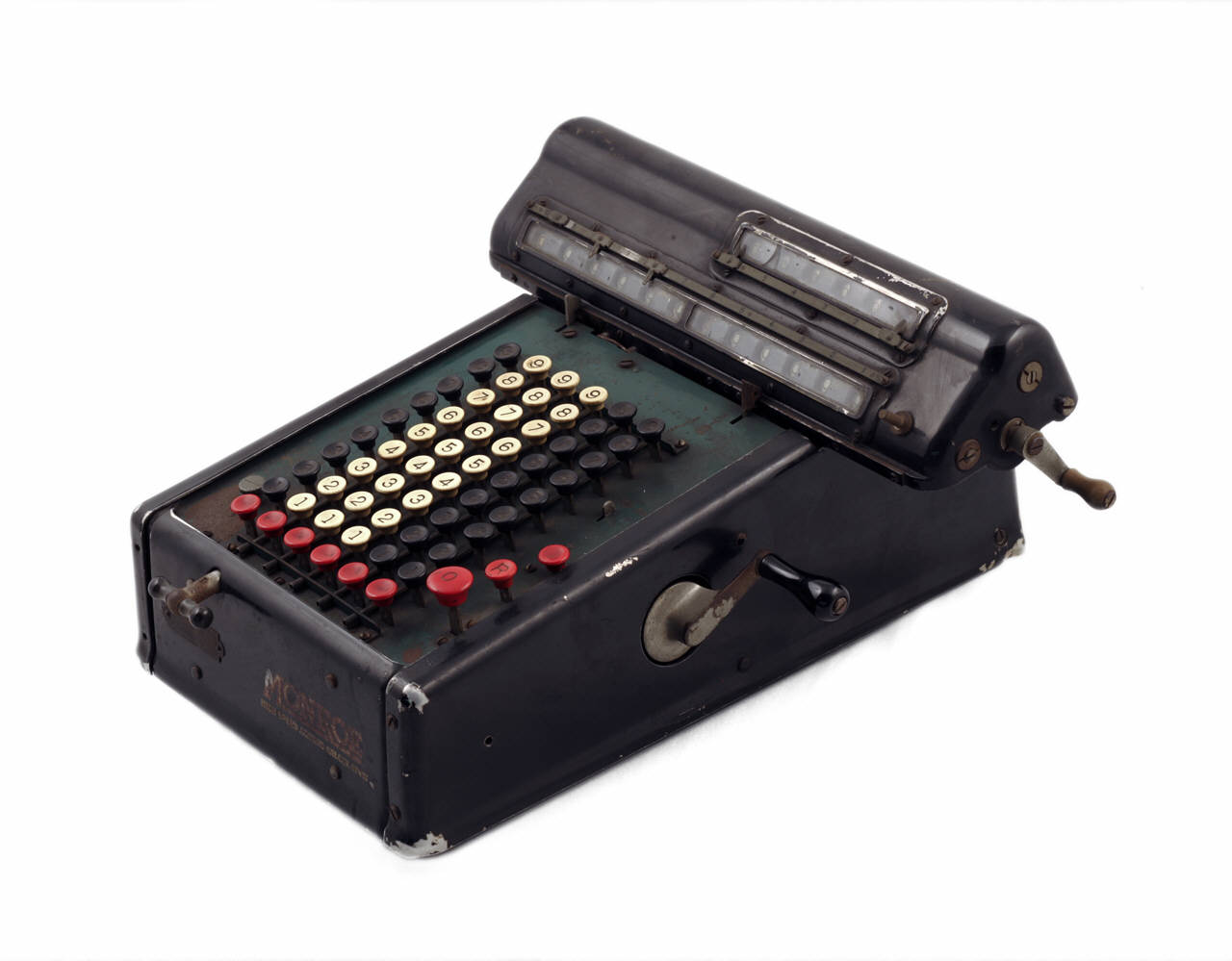 Calcolatrice meccanica a tastiera estesa, costituita da un corpo in ghisa verniciato di nero lucido, su cui è montato un carello mobile; la tastiera è situata su un piano metallico verniciato di verde. La macchina poggia su quattro piedini di gomma. La tastiera è formata da 54 tasti in gomma dura, numerati da 1 a 9 e disposti in sei colonne; alla base di ogni colonna, inoltre, è posto un tasto rosso per l'azzeramento. Le colonne di tasti sono separate tra loro da indicatori visivi per l'impostazione delle cifre decimali. Alla destra della tastiera si trovano tre tasti di colore rosso che costituiscono i comandi delle operazioni: un tasto per l'azzeramento della tastiera, un tasto per addizioni e sottrazioni e un tasto per moltiplicazioni e divisioni. Nella parte posteriore della calcolatrice è posto il carrello mobile sul quale sono posti il totalizzatore a dodici finestrelle e il numeratore a sei finestrelle, per la visualizzazione del moltiplicatore della moltiplicazione e il quoziente della divisione. Sul lato anteriore della calcolatrice è posizionata l'impugnatura della leva che comanda gli spostamenti del carrello; sul fianco sinistro della macchina è situata la manovella per l'esecuzione delle operazioni. Sul lato destro del carrello inoltre si trova un'altra manovella, più piccola, per l'azzeramento dei visualizzatori.