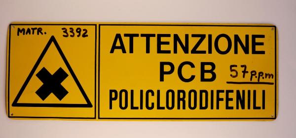 Cartello rettangolare, suddiviso in due campi, recante un pittogramma (a sinistra) e una scritta (a destra), ottenute mediante l'utilizzo della serigrafia, su fondo giallo. In aggiunta scritte a mano con pennarello indelebile. Presenta quattro fori agli angoli atti al fissaggio.\n\n\n\n