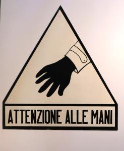 Cartello costituito da una parte triangolare, con pittogramma nero su fondo bianco, e una parte rettangolare recante scritta in nero su fondo bianco, ottenuti mediante l'utilizzo della serigrafia.\n\n\n\n\n