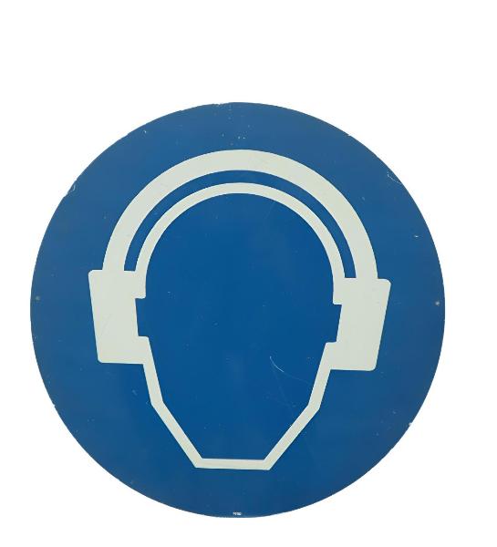 Cartello rotondo con pittogramma centrale in bianco su fondo circolare blu, ottenuto mediante l'utilizzo della serigrafia. Presenta due fori laterali atti al fissaggio.\n