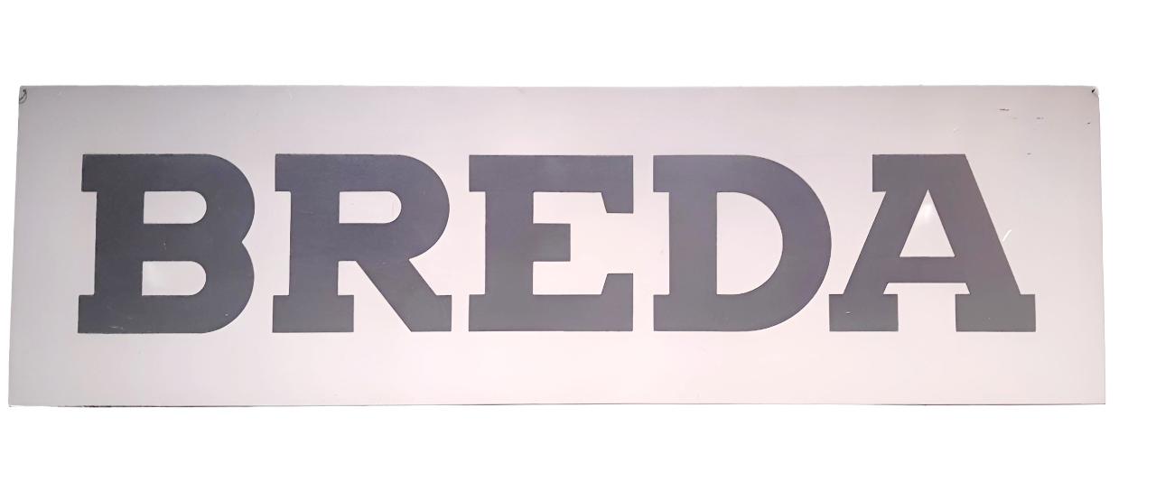 Lastra rettangolare, recante scritta in nero, ottenuta mediante l'utilizzo della serigrafia, su fondo metallico. Presenta due fori agli angoli superiori atti al fissaggio.\n\n