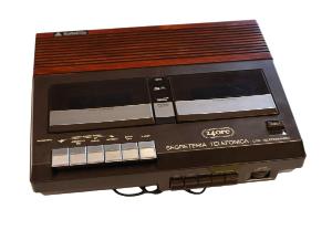 Segreteria telefonica con doppio registratore a cassette per ricevere e inviare messaggi.