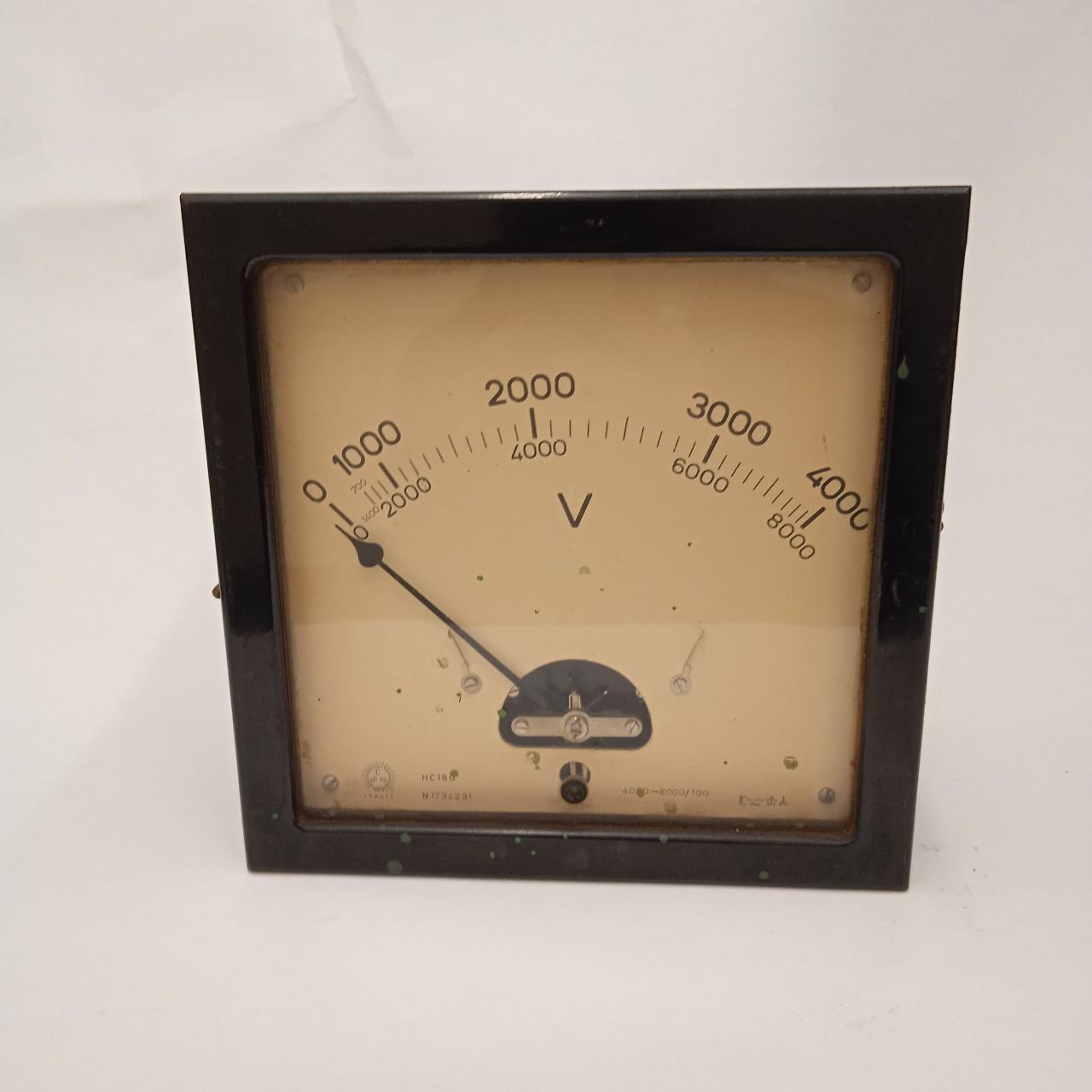Strumento atto alla misurazione della tensione tra due punti in un circuito elettrico, costituito da una scatola in metallo con vetro nella parte anteriore a protezione del quadrante munito di lancetta indicatrice e doppia scala di lettura. Nella parte posteriore sono presenti due connettori per i collegamenti elettrici.