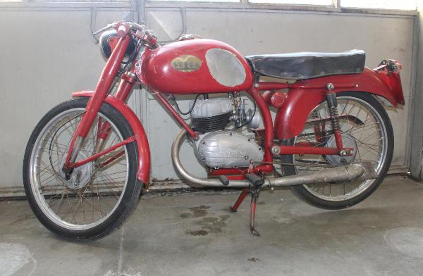 moto mod.100 Turismo e Sport.Motore monocilindrico a 2 tempi, alesaggio e corsa 52x46 =98cc ; potenza 5,5 CV; accensione a volano magnete ; cambio in blocco a 3 marce con preselettore a pedale;frizione a dischi multipli in bagno d'olio;trasmissione primaria ad ingranaggi, secondaria a catena.Telaio in tubi; forcella anteriore telescopica; sospensione posteriore a forcellone oscillante con ammortizzatori idraulici; gomme 2,375x20 anteriormente e 24x2,1-4z2 posteriormente; peso 80 Kg; consumo 2.1-4 litri per 100 Km; velocità 80Km/ h