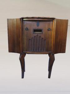 Apparecchio radio a forma di mobile in legno di noce, poggia su quattro piedini. La parete frontale presenta due antine incernierate sui lati ed apribili. Una volta aperto, si accede alla parete frontale dell'apparecchio. In alto sono presenti la scala di sintonia tarata in lunghezze d'onda (da 200 a 550m con tacche ogni 10) e due manopole per l'accensione/regolazione del volume e per la sintonia; in basso è presente l'altoparlante elettrodinamico circolare protetto da un tessuto e alcune astine decorative in legno.\nSul retro è visibile, in alto il circuito supereterodina con stadio RF, ZF/IF 175 KHz a 6 valvole e in basso il retro dell'altoparlante con tutti i filI di collegamento.