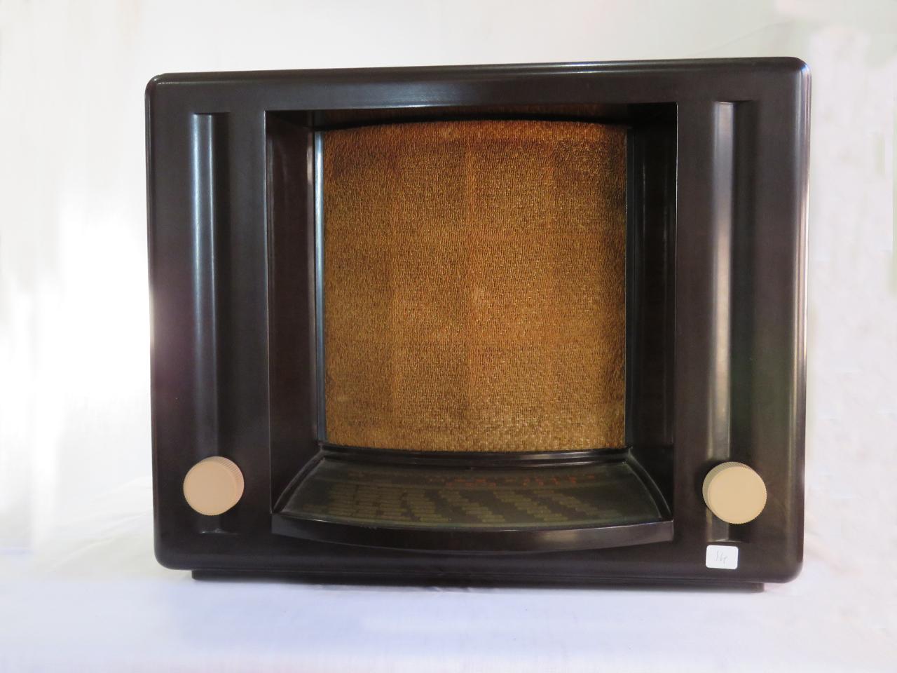 Apparecchio radio con mobile basso in bachelite stampata e base in legno, poco profondo. Sulla parete frontale, in alto è presente l'altoparlante magnetodinamico, protetto da una griglia, parte bombata del mobile, e da un tessuto. In basso è disposta la scala parlante posizionata “a proscenio” e con le indicazioni delle lunghezze d'onda e delle località.\nAi lati della scala sono presenti due manopole bianche per la sintonizzazione e la regolazione del volume. Sul lato destro è inserito un deviatore per il cambio di gamma d'onda.\nSul retro, sotto ad una griglia protettiva, è visibile il circuito supereterodina ZF/IF 115 KHz a 5 valvole con 7 circuiti accordati in modulazione di ampiezza (AM) oltre all'altoparlante e ai fili dei collegamento elettrici compreso quello per l'alimentazione in corrente alternata. Il trasformatore e le parti di alimentazione sono fissati alla base in legno, tutti gli altri componenti dei circuiti sono appesi in appositi alloggiamenti predisposti all'interno del mobile, non è presente lo chassis. Sul retro sono presenti una presa antenna e una terra, una presa per il collegamento alla rete di alimentazione.