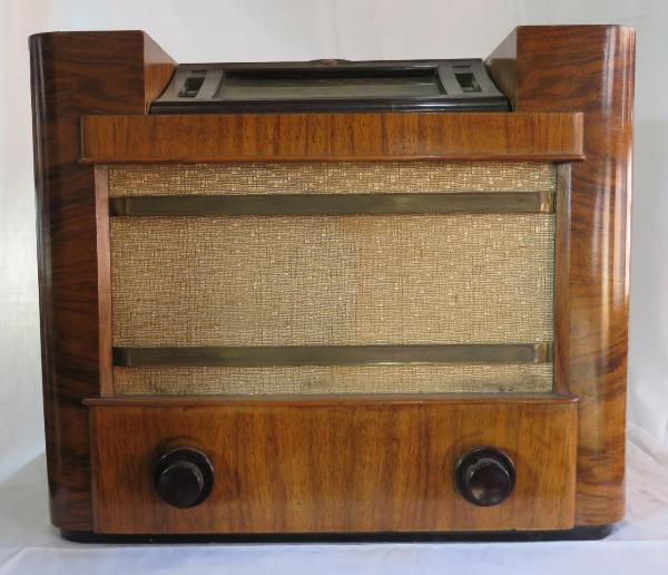 Apparecchio radio ad andamento orizzontale con mobile in legno. La parete frontale è prevalentemente occupata dall'altoparlante magnetodinamico, protetto da un tessuto e due aste metalliche. In basso sono presenti due manopole in bachelite per la sintonizzazione e la regolazione del volume. Nella parte superiore del mobile è presente una scala parlante basculante inserita in una cornice in bachelite. Sulla scala sono indicate le lunghezze d'onda e le località. Di fianco alla scala sono visibili due scale una con indicazioni numeriche (numeri interi) l'altra con indicazione delle gamme d'onda.\nSul retro, sotto ad una griglia protettiva, è visibile il circuito supereterodina ZF/IF 128KHz a 5 valvole con 7 circuiti accordati in modulazione di ampiezza (AM) oltre all'altoparlante con i suoi magnete permanente e bobina mobile e ai fili dei collegamento elettrici compreso quello per l'alimentazione in corrente alternata. Sul retro sono presenti la presa fono, quella per un eventuale altoparlante esterno, per l'antenna oltre all'interruttore di controllo dei toni.