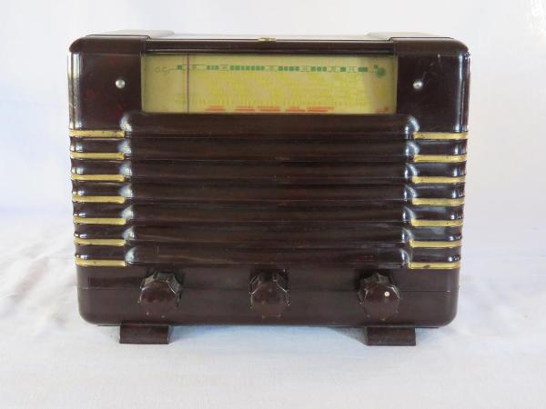 Apparecchio radio ad andamento orizzontale di dimensioni contenute e con mobile in bachelite con inserti dorati sugli spigoli verticali. Nella parte alta della parete frontale si trova la scala parlante illuminata da sinistra su cui sono indicate le lunghezze d'onda e le località. Tutta la restante parete frontale è occupata dall'altoparlante elettrodinamico coperto da aste a persiana in bachelite. Nella parte bassa sono disposte tre manopole per accensione/spegnimento e regolazione del volume, sintonizzazione e selezione della gamma d'onda.\nSul retro, sotto ad una griglia protettiva, è visibile il circuito supereterodina ZF/IF 472KHz a 4 valvole con circuiti in modulazione di ampiezza (AM) oltre all'altoparlante con le sue bobine. Sul retro sono presenti le presa per antenna e terra oltre alla presa per il filo di collegamento all'alimentazione.