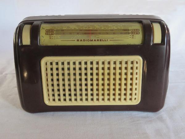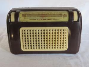 Apparecchio radio compatto ad andamento orizzontale, con mobile in bachelite marrone e bordi arrotondati. L'altoparlante magnetodinamico occupa gran parte della parete frontale ed è protetto da una griglia di bachelite bianca. La scala parlante è posizionata longitudinalmente su un cilindro inserito nella parte superiore e su di esso sono riportate le lunghezze d'onda e le località. Ai lati della scala parlante, incastonate nel profilo dell'apparecchio sono presenti due rotelle bianche per accensione/spegnimento e regolazione del volume e per la sintonizzazione\nSul retro, sotto ad una griglia protettiva, è visibile il circuito supereterodina a 5 valvole con circuiti in modulazione di ampiezza (AM). Dal retro fuoriescono il filo dell'antenna e il cavo di alimentazione.