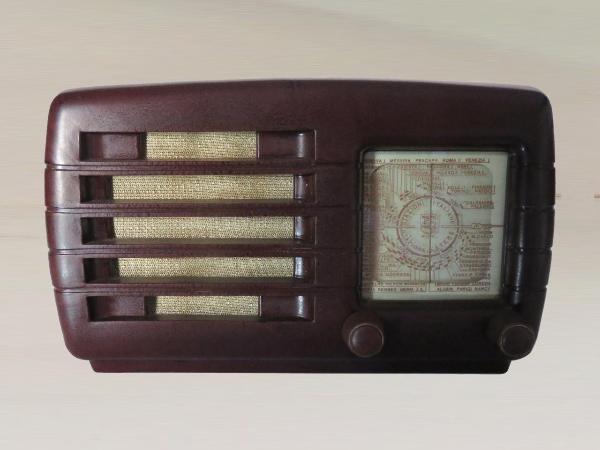 Apparecchio radio midget con mobile compatto ad andamento orizzontale in bachelite con bordi arrotondati.\nLa parete frontale è divisa in due metà: a sinistra è disposto l'altoparlante circolare protetto da un tessuto e da una griglia in bachelite parte integrante del mobile, a destra la scala di sintonia circolare con le indicazioni per le stazioni italiane nella parte superiore ed estere in quella inferiore. Sono indicate le lunghezze d'onda e i nomi delle località. Sotto alla scala sono inserite una manopola per la regolazione del volume e una per la sintonizzazione.\nSul retro, sotto ad una griglia protettiva, è visibile il circuito supereterodina a 5 valvole serie U con filamento per alte tensioni (senza trasformatore), in modulazione di ampiezza (AM) oltre all'altoparlante. Dal retro fuoriescono l'antenna e il cavo di collegamento all'alimentazione.