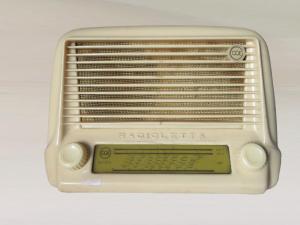 Apparecchio radio midget con mobile compatto in materiale plastico bianco con andamento orizzontale.\nLa parte superiore della parete frontale è occupata dall'altoparlante magnetodinamico coperto da un tessuto e da una griglia orizzontale che fa parte del mobile in plastica. La parte inferiore è inclinata e ospita la scala parlante retroilluminata stampata su una lastra in materiale plastico trasparente che riporta tre scale lineari per le diverse gamme d'onda con indicazione delle lunghezze d'onda e delle località. Alla sinistra delle scale è inserita una manopola per l'accensione/ spegnimento e regolazione del volume, alla destra una per la sintonizzazione. Sul lato destro è presente un selettore per la gamma d'onda.\nSul retro, sotto ad un pannello protettivo, è visibile il circuito supereterodina ZF/IF 468KHz a 5 valvole in modulazione di ampiezza (AM) oltre all'altoparlante. Sul retro sono presenti le presa per antenna e terra, e il cambiatensione per l'alimentazione.