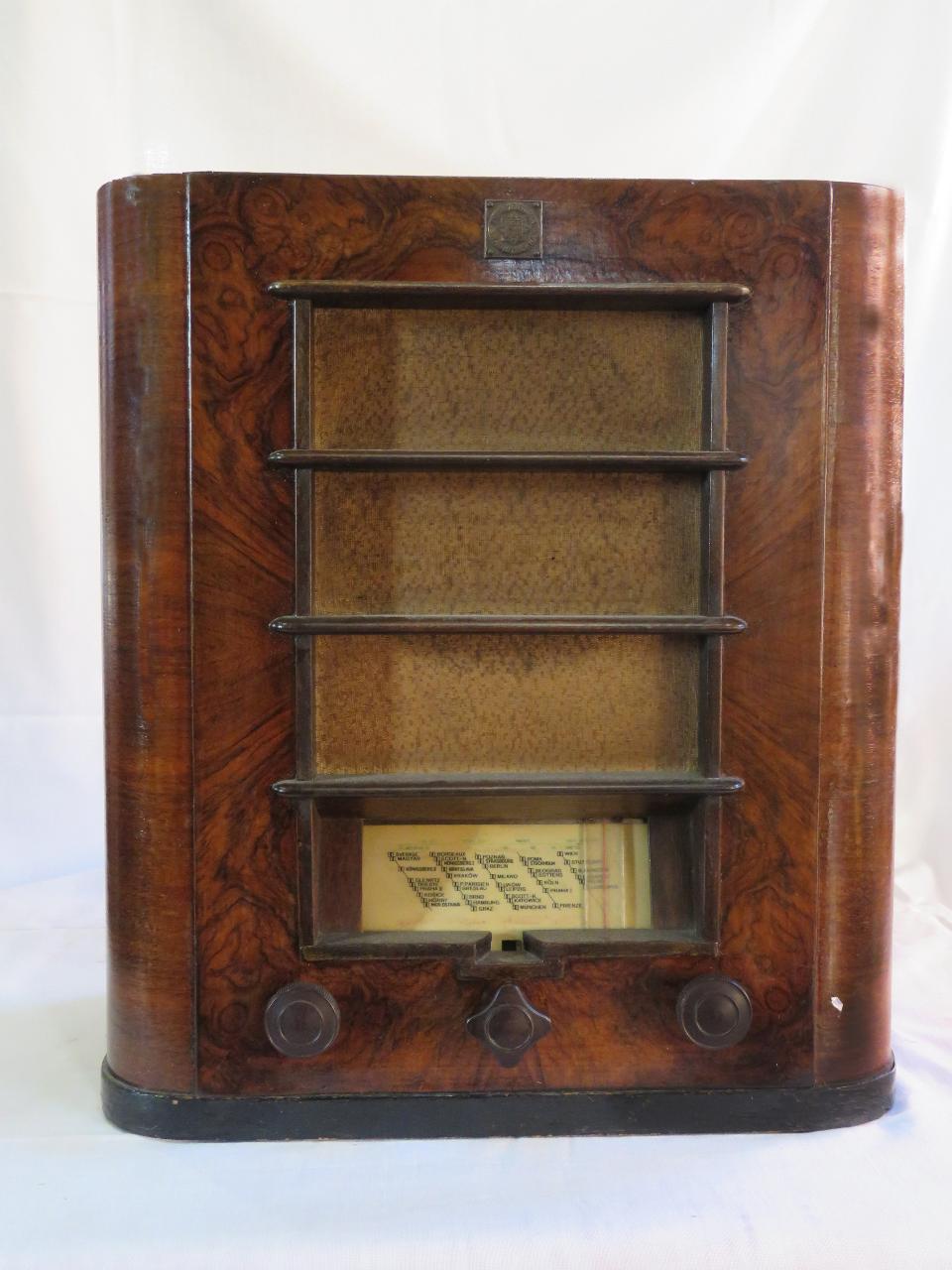 Apparecchio radio a sviluppo verticale in legno con profili arrotondati. La parete frontale è divisa in quattro strisce orizzontali : dietro alle prime si trova l'altoparlante elettrodinamico circolare coperto da un tessuto e su quello più in basso si ha la la scala parlante a indice scorrevole e illuminata dall'alto. Sulla scala sono indicate le lunghezze d'onda e i nomi delle località (di cui molte dell'Est Europa). \nSulla parete frontale in basso sono presenti tre manopole: quella al centro è utilizzata per accensione/spegnimento/controllo volume, le altre due manopole permettono la sintonizzazione con reazione.\nSul pannello che chiude l'apparecchio sul retro, si trovano le prese per antenna e terra oltre al cavo di alimentazione di rete. Sono inoltre presenti una presa fono e un dispositivo per il controllo dei toni.\nAll'interno sono presenti 4 valvole e un circuito a reazione con rigenerazione in modulazione di ampiezza (AM) e due stadi BF.