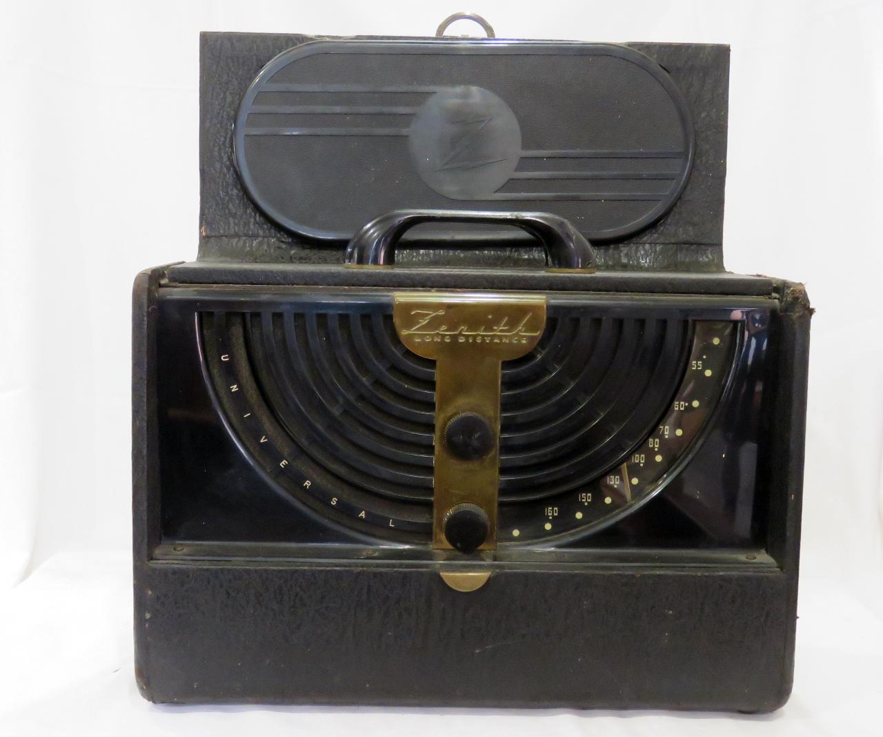 Apparecchio radio portatile con mobile in legno e metallo parzialmente ricoperto in pelle e maniglia per il trasporto.\nLa parete frontale è apribile e sotto è inserita una griglia in metallo semicircolare dietro alla quale è fissato l'altoparlante magnetodinamico protetto da un tessuto. Lungo metà del profilo è inserita la scala di sintonia ad indice ruotante demoltiplicato con indicate le frequenze. In mezzo a questo settore circolare sono presenti due manopole per accensione/spegnimento/regolazione volume e sintonizzazione fissate lungo una lastra in ottone.\nIl retro ha un foro nella parte alta che contiene un meccanismo per aprire la parete posteriore.\nAll'interno è visibile il circuito supereterodina con stadio RF, ZF/IF 455 kHz, due stadi BF, a 6 valvole con otto circuiti accordati in modulazione di ampiezza (AM), batteria e con antenna interna. Sul retro sono presenti una presa per altoparlante esterno e il cavo di collegamento alla rete elettrica.