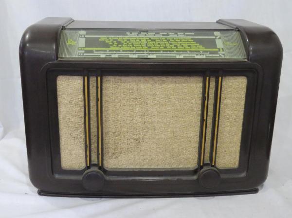 Apparecchio radio soprammobile a sviluppo orizzontale con mobile in bachelite. La parete frontale ha una grande apertura coperta da un tessuto dietro al quale nella parte sinistra è inserito l'altoparlante a magnete permanente circolare, in quella destra il circuito. Davanti al tessuto, sono disposte due coppie di astine verticali alla base delle quali sono presenti due manopole in bachelite per controllo volume e sintonizzazione. Sul lato destro sono presenti un interruttore per accensione/spegnimento e una manopola per la selezione della gamma d'onda.\nLo spigolo superiore è smussato a 45° dove è inserita la scala parlante in vetro ad indice scorrevole con indicazioni delle lunghezze d'onda e delle località, in diverse colorazioni a seconda della gamma d'onda. Di fianco ad ogni scala è disegnata una freccia che indica la direzione in cui si deve trovare il commutatore per selezionare quella gamma d'onda.\nSul retro, sotto ad una griglia protettiva, è visibile il circuito supereterodina con circuiti in modulazione di ampiezza (AM). Sul retro sono presenti le presa per antenna e terra, fono oltre al cavo per l'alimentazione.