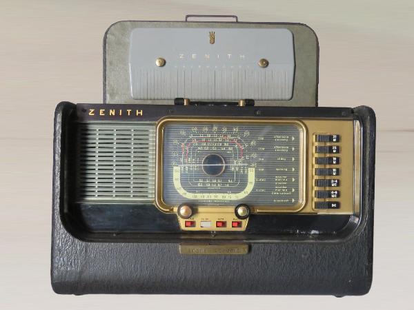 Apparecchio radio portatile con mobile in legno ricoperto in finta pelle dall'aspetto di una valigetta con maniglia rigida per il trasporto. Sganciando il fermo sul fronte dell'apparecchio, si solleva un coperchio rigido incernierato posteriormente e si rende accessibile il radioricevitore vero e proprio.\nLa parete frontale è divisa in tre parti: a sinistra è inserito l'altoparlante magnetodinamico circolare, dietro ad una griglia in materiale plastico; al centro, in una cornice color oro, si ha la scala a frequenze a indice ruotante demoltiplicato, sotto alla quale sono presenti due manopole per accensione/spegnimento/regolazione volume e sintonizzazione e quattro deviatori per il controllo dei toni (truble, voice, alto, basso) – una levetta è mancante; a destra si trovano sette interruttori disposti in verticale per canali preselezionati (afternoon & evening 31M, afternoon & evening 25M, alla day 19M, morning 16M, weather marine & amateur 2-4MC, weather marine & amateur 4-8MC, broadcast DC). Sopra è inserita un'antenna telescopica.\nIl retro ha un foro nella parte alta che contiene un meccanismo per aprire la parete posteriore.\nAll'interno è visibile il circuito supereterodina con stadio RF, ZF/IF 455 kHz, a 5 valvole con circuiti in modulazione di ampiezza (AM), batteria e con antenna interna. Sul retro sono presenti una presa per altoparlante esterno e il cavo di collegamento alla rete elettrica.\n