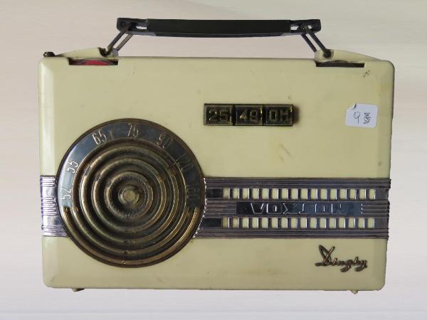 Apparecchio radio compatto portatile a forma di valigetta con maniglia. Il mobile è in materiale plastico bianco avorio con una griglia orizzontale color argento nella parte centrale. Nella parte sinistra della griglia è inserito l'altoparlante magnetodinamico circolare, sopra al quale è posta la scala di sintonia circolare ad indice ruotante demoltiplicato con indicazione delle frequenze. In alto si trovano tre pulsanti per il cambio della gamma d'onda.\nNella parte superiore sono inserite due manopole, che fuoriescono solo in parte dal mobile, per accensione/spegnimento/regolazione volume e sintonizzazione oltre ad un'antenna telescopica estraibile. \nLa parete posteriore è parzialmente forata per permettere l'aerazione ed aprendo il pannello posteriore è visibile il circuito supereterodina a 4 valvole con circuiti in modulazione di ampiezza (AM). Sotto è presente un interruttore per accensione/spegnimento.