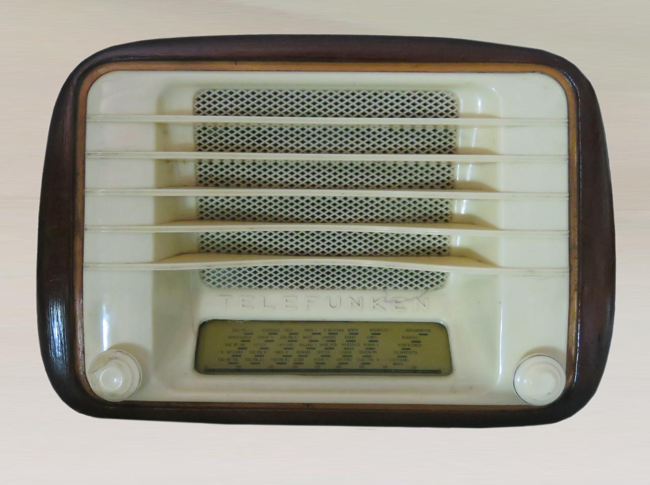 Apparecchio radio midget con mobile compatto in legno e materiale plastico bianco,, bordi arrotondati, ad andamento orizzontale. Al centro della parete frontale è inserito l'altoparlante magnetodinamico circolare protetto da una griglia che fa parte del mobile dell'apparecchio. Sotto è inserita la scala parlante in plastica ad indice scorrevole, con indicazione delle lunghezze d'onda e delle località.\nAi lati della scala troviamo due manopole in materiale plastico per accensione/spegnimento/regolazione volume e sintonizzazione.\nSul retro, sotto ad un pannello protettivo con aperture per l'aerazione, è visibile il circuito supereterodina ZF/IF 468 kHz, a 4 valvole con circuiti in modulazione di ampiezza (AM). \nSul retro sono presenti il cambiatensione, una presa per antenna e il cavo di collegamento alla rete di alimentazione.