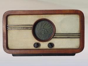Apparecchio radio ad andamento orizzontale con mobile in legno di diversi colori e parete frontale in tessuto, con bordi arrotondati. Al centro della parte frontale è inserita la scala parlante su vetro a indice ruotante con cornice in legno e tre righe orizzontali in legno decorative longitudinali lungo la parete frontale. la scala riporta le lunghezze d'onda e le località ed è illuminata dall'alto. Sotto alla scala una manopola permette accensione/spegnimento/regolazione volume, e l'altra la sintonizzazione.\nIl retro è coperto da un pannello parzialmente forato per permettere l'aerazione e dietro è visibile il circuito supereterodina a 4 valvole con circuiti in modulazione di ampiezza (AM). Sono presenti due prese per antenna e terra.\nDal retro fuoriesce il cavo di alimentazione.