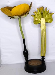 Modello di fiore e di infruttescenza sezionata di ranuncolo ingranditi. Il fiore è parzialmente scomponibile