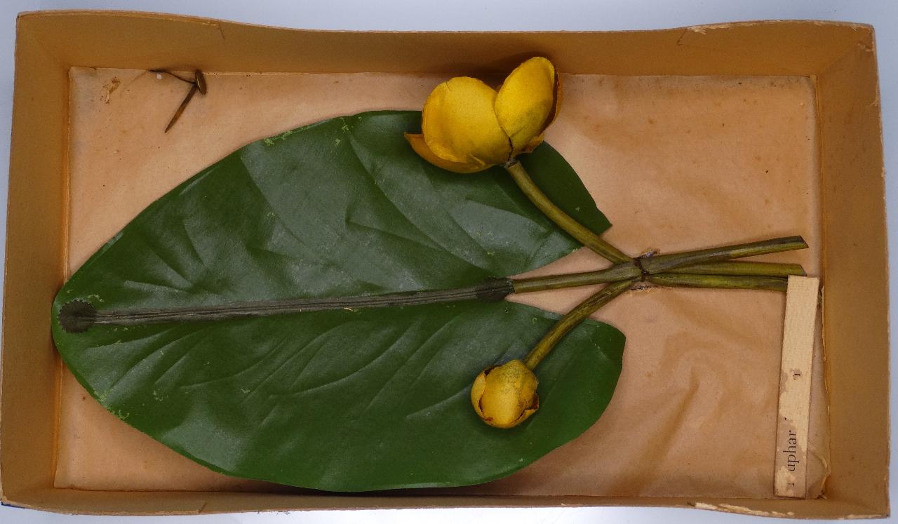 Modelli di fiori e foglia di Nuphar lutea a grandezza naturale