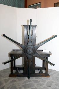 Torchio calcografico in legno\nCostruito in Italia intorno al 1750 circa