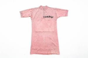 DESCRIZIONE MAGLIA\nMaglia rosa in lana prodotta dal maglificio Castelli, girocollo con cerniera, con tasche senza bottoni collocate solo sul lato posteriore.