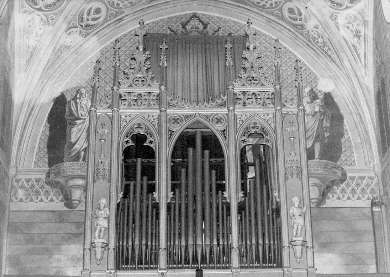 - NOTIZIE STORICO CRITICHE Lo strumento nell'ottocento fu concepito ad una sola tastiera. Nei primi anni del novecento fu ampliato con l'aggiunta di una seconda tastiera (organo eco) le cui canne sono disposte in cassa espressiva in alto dietro il somiere maestro. Contemporaneamente all'installazione di questo secondo corpo fu ampliata la pedaliera a 27 note reali e vennero apportate delle modifiche al grande organo: fu ampliato il clarino di 8 ai bassi, probabilmente con l'utilizzo del corno inglese 16 fu ampliato il bordone 8 e il flauto 8 ai bassi. Altri rigestri (mutazioni di misura larga) vennero sopppiantati da violeggianti. Un segno evidente di queste modifiche è riscontrabile sul somiere maestro nella disposizione delle manette (una delle feritoie è vuota e altre non inseriscono alcun registro). Inoltre furono applicati i baffetti a numerose canne fra le quali quelle di facciata