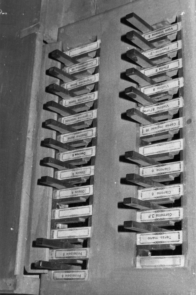 - NOTIZIE STORICO CRITICHE ottimo strumento, in buono stato di conservazione e di intonazione. L'unica parte non priginale è costuita dall'elettroventilatore e dai violini. Non si spiegano ad un primo esame le 5 feritoie vuote sulla piastra dei registri (forse non hanno mai contenuto il corrispettivo registro)