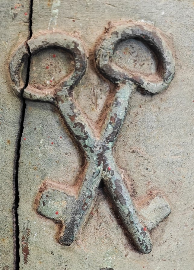 - ISCRIZIONE + S. PETRI ORA PRO NOBIS + IOANNES DE COSTANZO A TORA FUDIT 1754