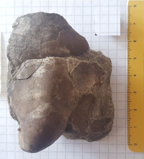 Animalia Mollusca Bivalvia Ostreida Gryphaeidae Gryphaea columba: Grypea su matrice | Germania , Free State of Saxony, distretto Sächsische Schweiz-Osterzgebirge, Sachsen, Bad Schandau