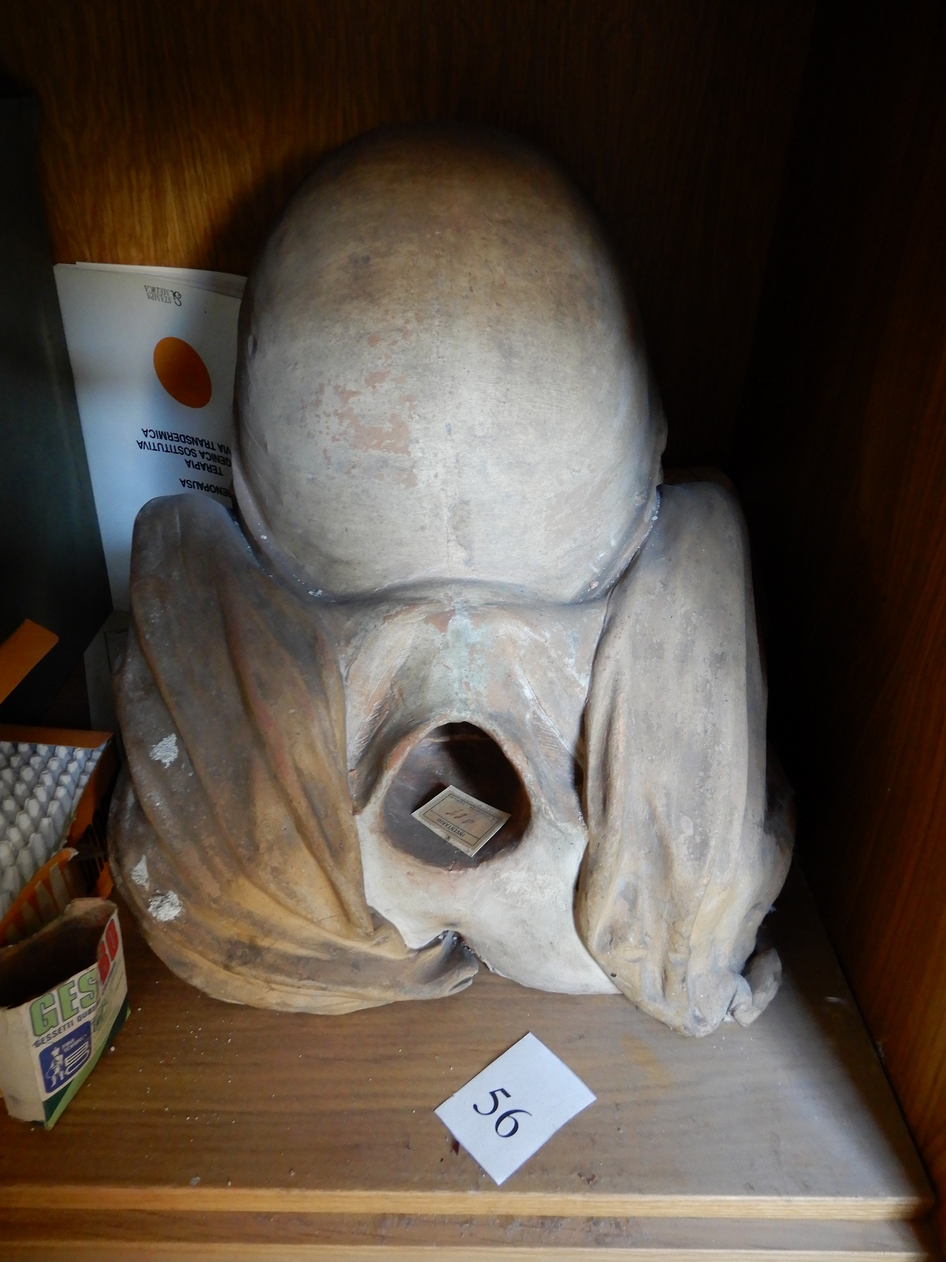 Modello anatomico: terracotta, bacino femminile con utero gravido a termine e genitali in periodo dilatante avanzato