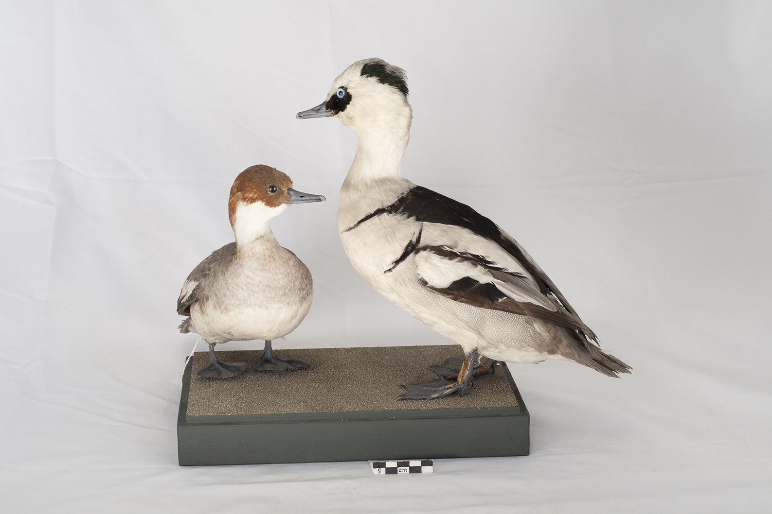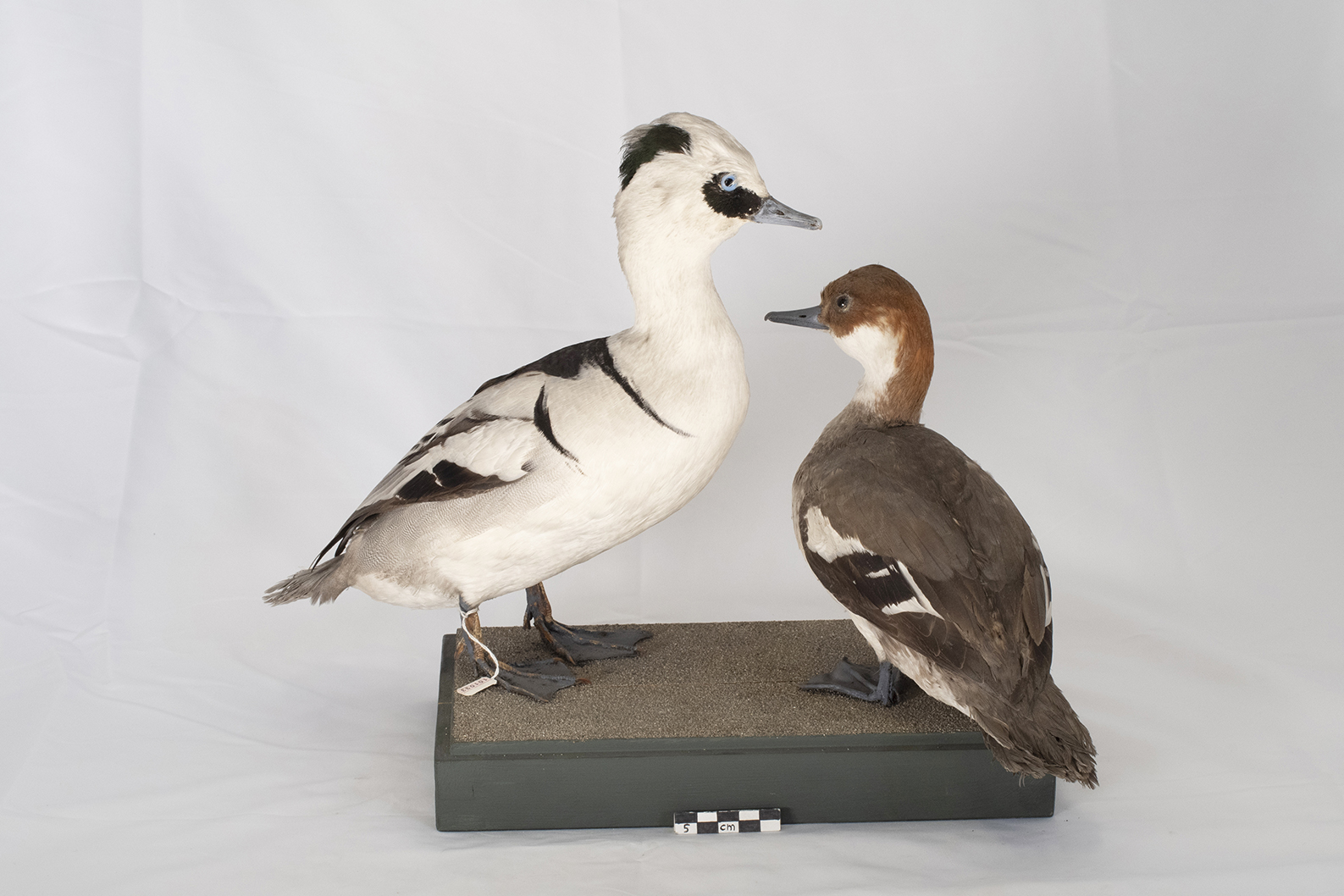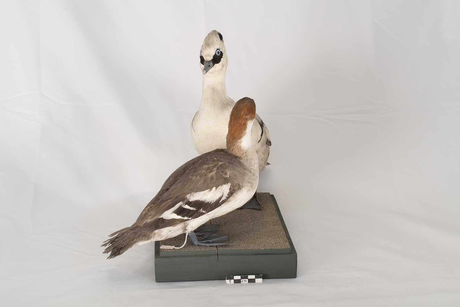 Due esemplari di pesciaiola tassidermizzati, un maschio e una femmina, montati su base
