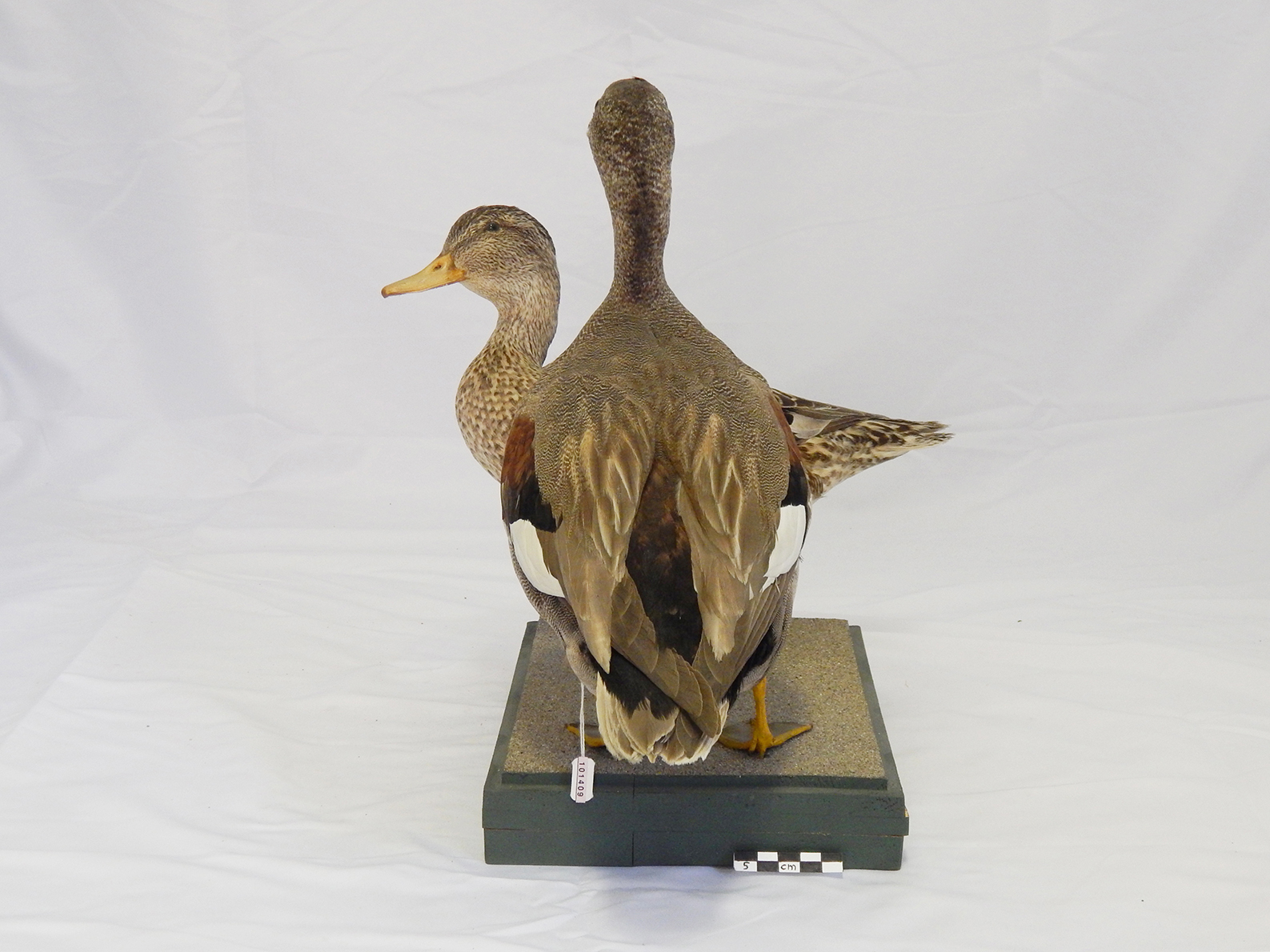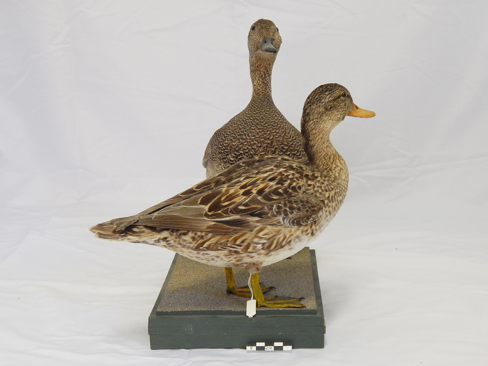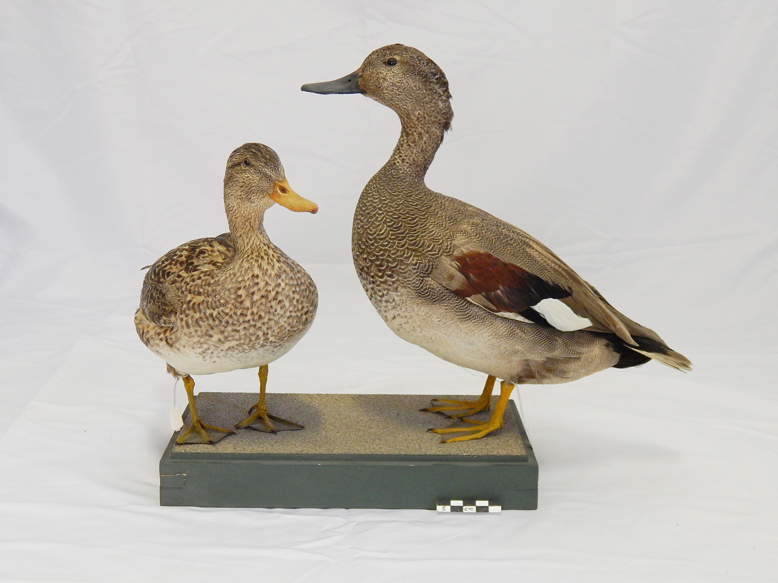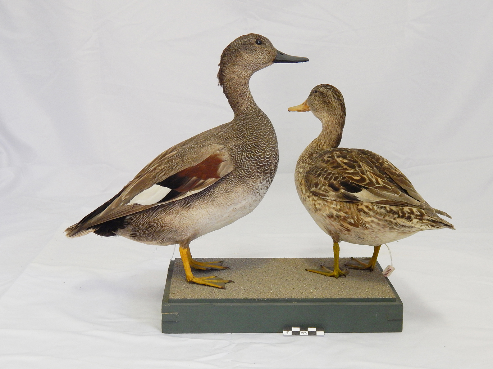 Due esemplari di canapiglia, un maschio e una femmina, tassidermizzati e montati su base