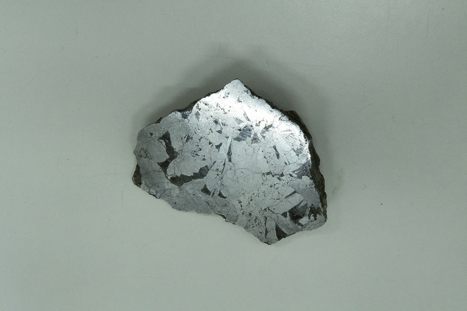 Ottaedrite brecciata, gr. 166 frammento con larga faccia levigata e attaccata con delle figure di corrosione