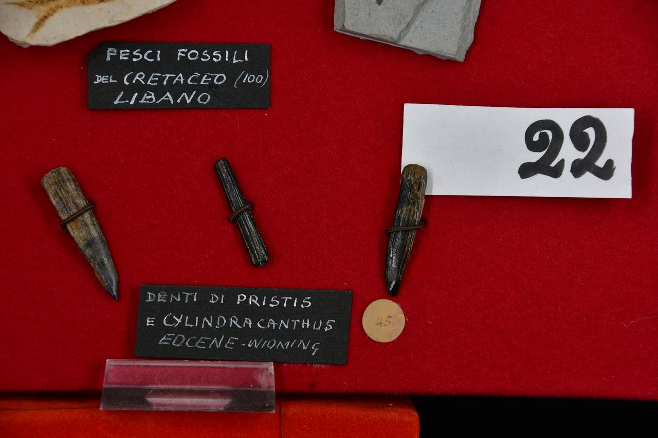 fossile (denti di Pristis e Cylindracanthus, insieme)
