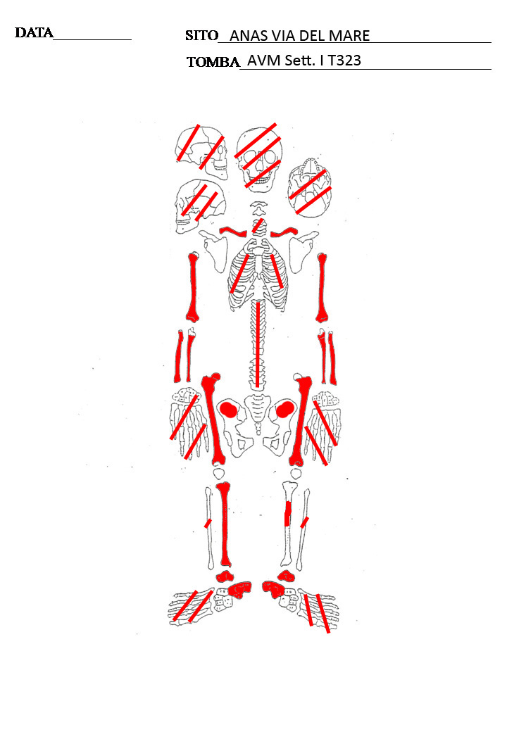 AVM Sett.I T323 Resti scheletrici pertinenti un individuo adulto. Scheletro con un buon grado di rappresentatività e conservazione