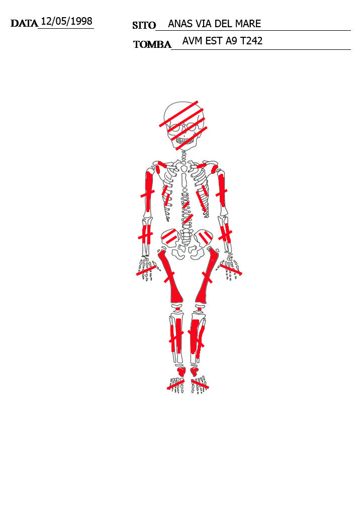 AVM Sett.H Est A9 T.242 Resti scheletrici pertinenti un individuo giovanile . Scheletro con un ottimo grado di rappresentatività e buon livello di conservazione