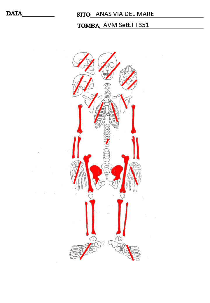 AVM Sett.I T.351 Resti scheletrici pertinenti un individuo adulto. Scheletro con un buon grado di rappresentatività e conservazione