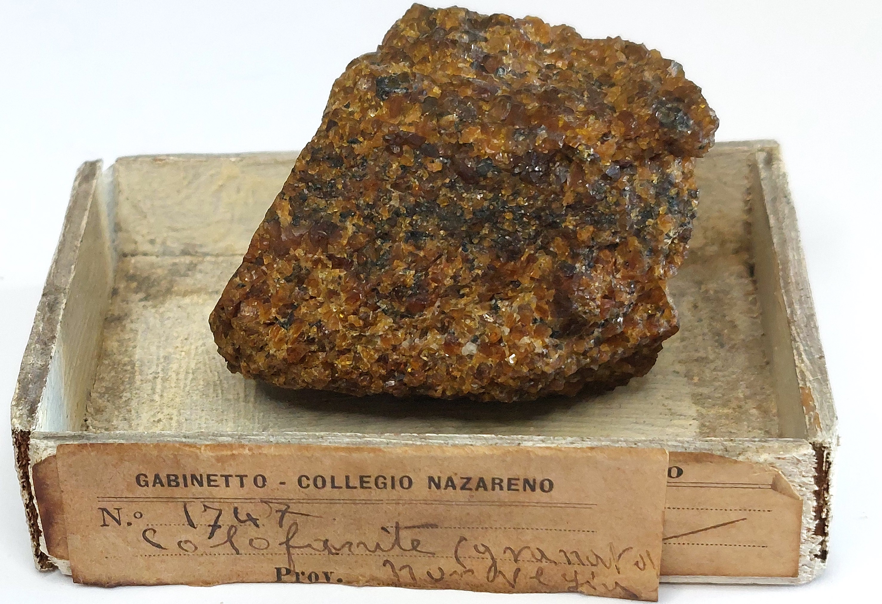 - NOTIZIE STORICO CRITICHE Il campione è parte della collezione storica del Gabinetto Mineralogico del Collegio Nazareno di Roma ed è stato donato a questa istituzione da Carlo Giuseppe Gismondi