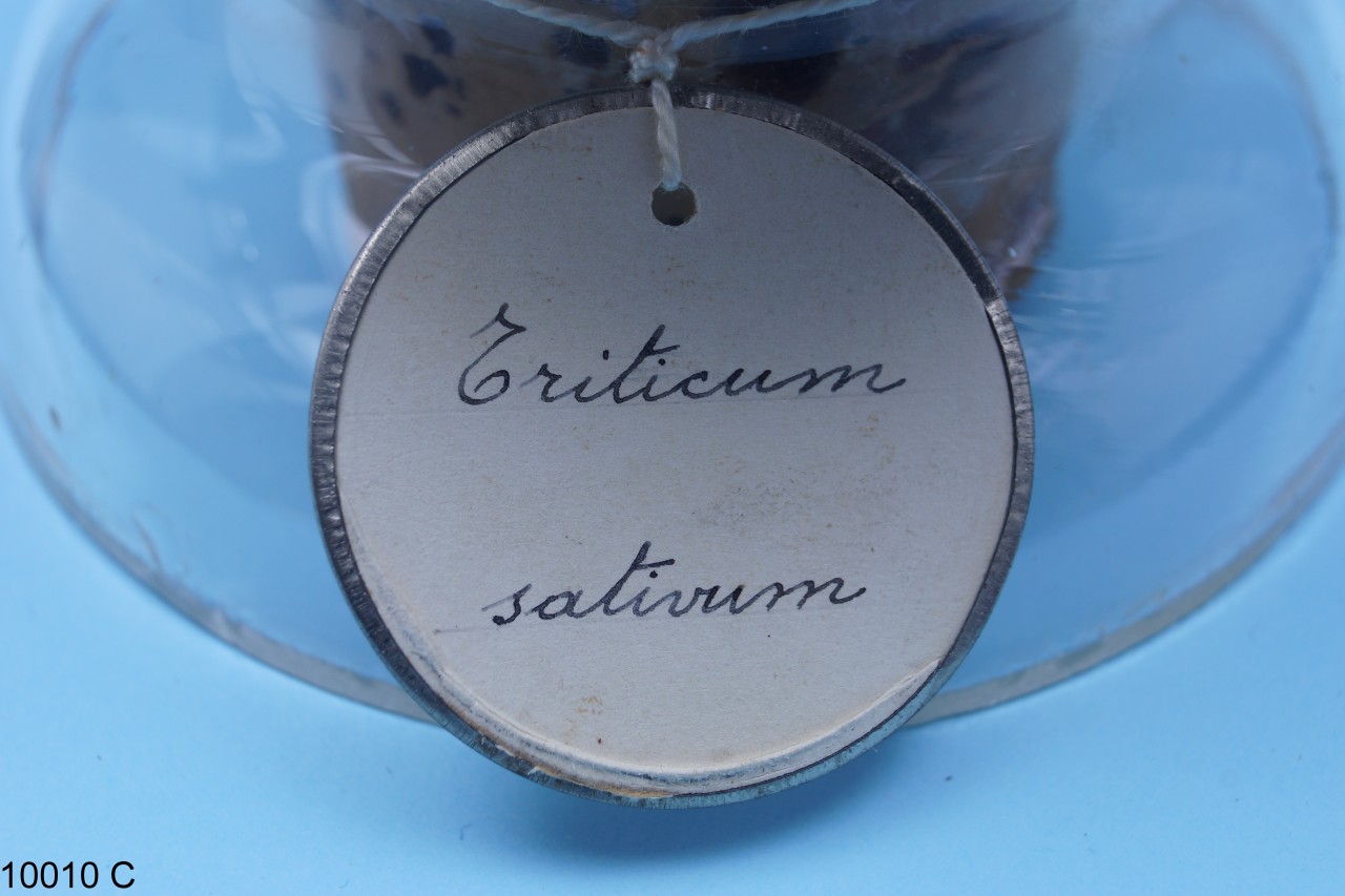 - NOTIZIE STORICO CRITICHE Barattolo in vetro con tappo in sughero contenente cariossidi di Triticum aestivum L. var. Risciola. La specie è stata pubblicata da: Carl Linnaeus, in: Species Plantarum, I: 85. 1753. Il nome comune della specie è grano tenero varietà Risciola. Il barattolo, insieme ad altri beni botanici, costituiva il Gabinetto di Fisica e di Storia Naturale del Seminario Regionale "Pianum" Abruzzo e Molise