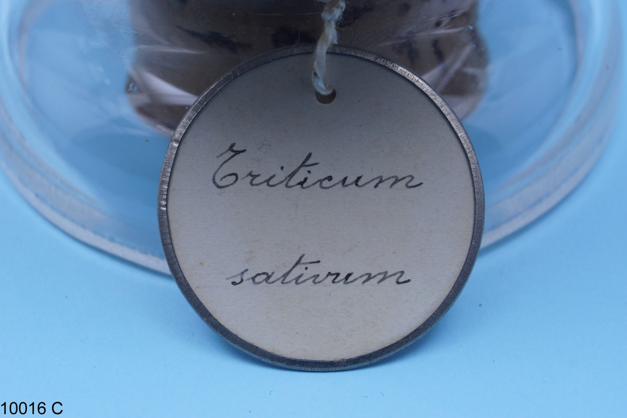 - NOTIZIE STORICO CRITICHE Barattolo in vetro con tappo in sughero contenente cariossidi di Triticum aestivum L. var. Risciola. La specie è stata pubblicata da: Carl Linnaeus, in Species Plantarum, 1: 85. 1753. Il nome comune della specie è grano tenero. Il barattolo, insieme ad altri beni botanici, costituiva il Gabinetto di Fisica e di Storia Naturale del Seminario Regionale "Pianum" Abruzzo e Molise