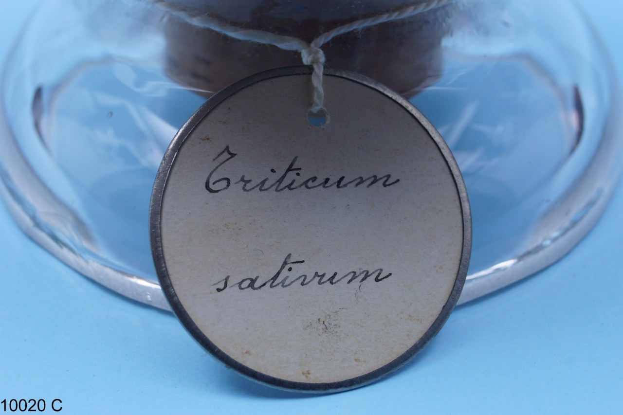 - NOTIZIE STORICO CRITICHE Barattolo in vetro con tappo in sughero contenente cariossidi di Triticum aestivum L. var. Mentana. La specie è stata pubblicata da: Carl Linnaeus, in: Species Plantarum, 1: 85. 1753. Il nome comune della specie è grano tenero varietà Mentana. Il barattolo, insieme ad altri beni botanici, costituiva il Gabinetto di Fisica e di Storia Naturale del Seminario Regionale "Pianum" Abruzzo e Molise